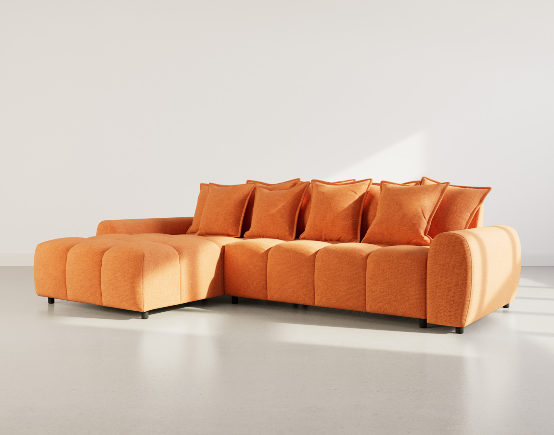 Avec Adelaide, le confort rencontre la flexibilité. Son angle réversible vous permet d’agencer la méridienne à gauche ou à droite selon votre pièce, et son pouf assorti transforme le canapé en un couchage d’appoint généreux en un clin d’œil. Pensé pour la détente, ce canapé 4 places séduit par son assise bombée et accueillante, presque comme un nuage. La jetée de coussins complète l’ensemble, offrant une sensation enveloppante idéale pour les longues soirées cocooning.