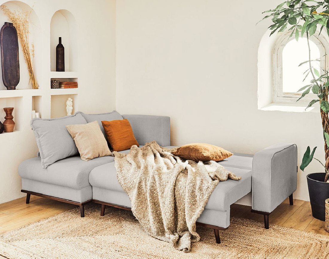 Albane - canapé d'angle gauche - 4 places - convertible avec coffre - en velours côtelé