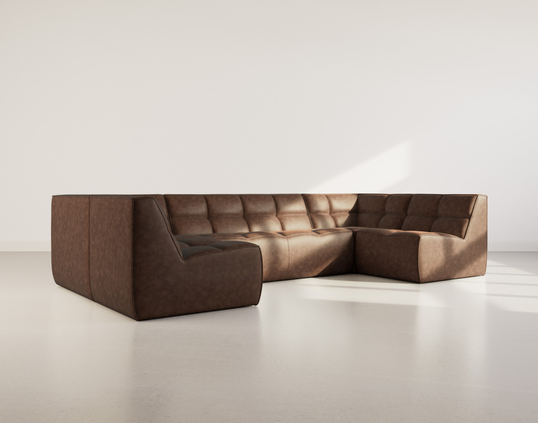 Alya - canapé modulable panoramique 7 places en simili - marron