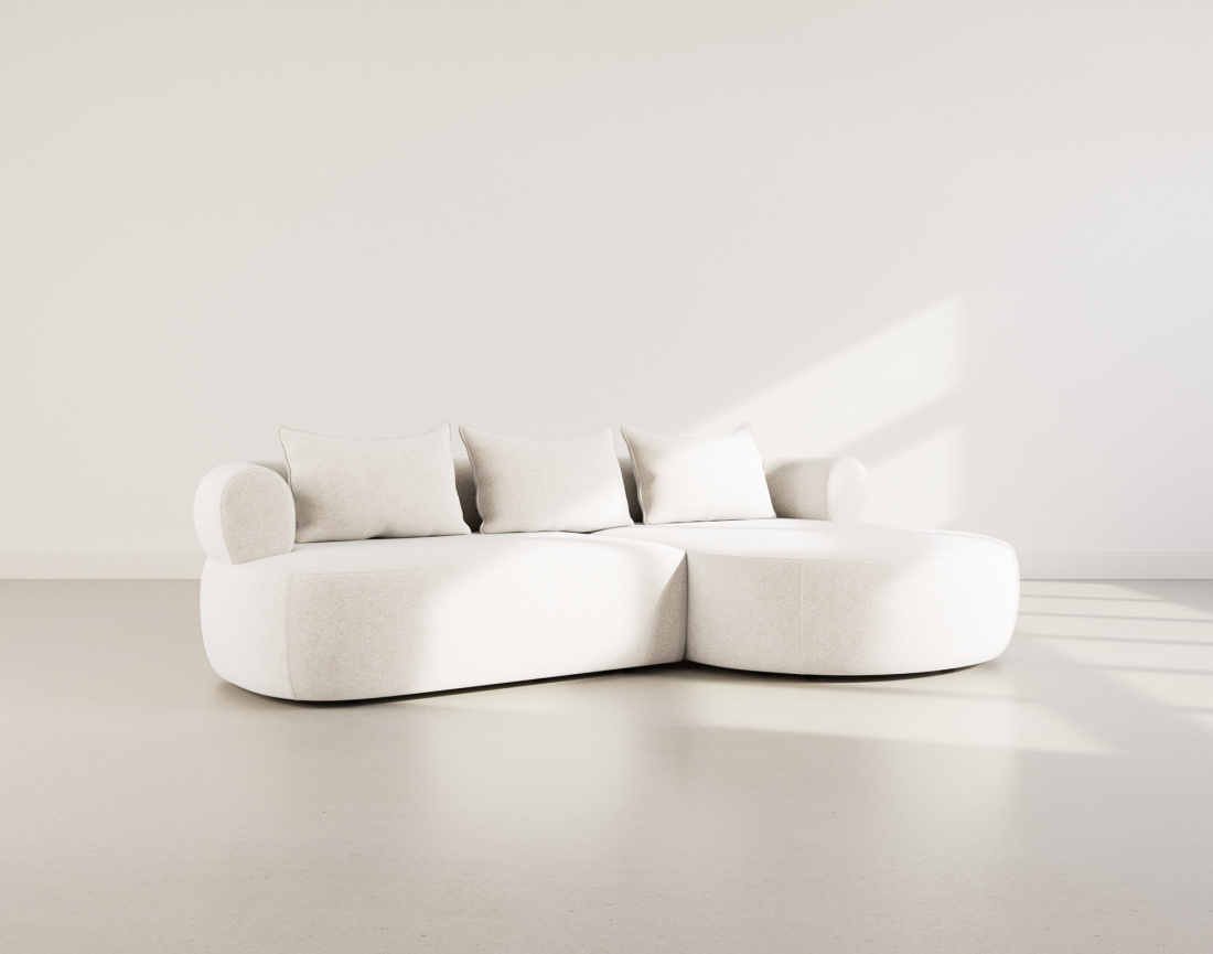 Le canapé d’angle droit Angela impose son style avec une silhouette élégante soulignée par des dossiers arrondis et une méridienne ultra tendance. Son design fluide et accueillant transforme votre salon en un espace cosy et chaleureux. Pensé pour le confort, il offre une belle largeur et une profondeur d’assise idéale pour s’installer longuement, que ce soit pour lire, discuter ou simplement se détendre.