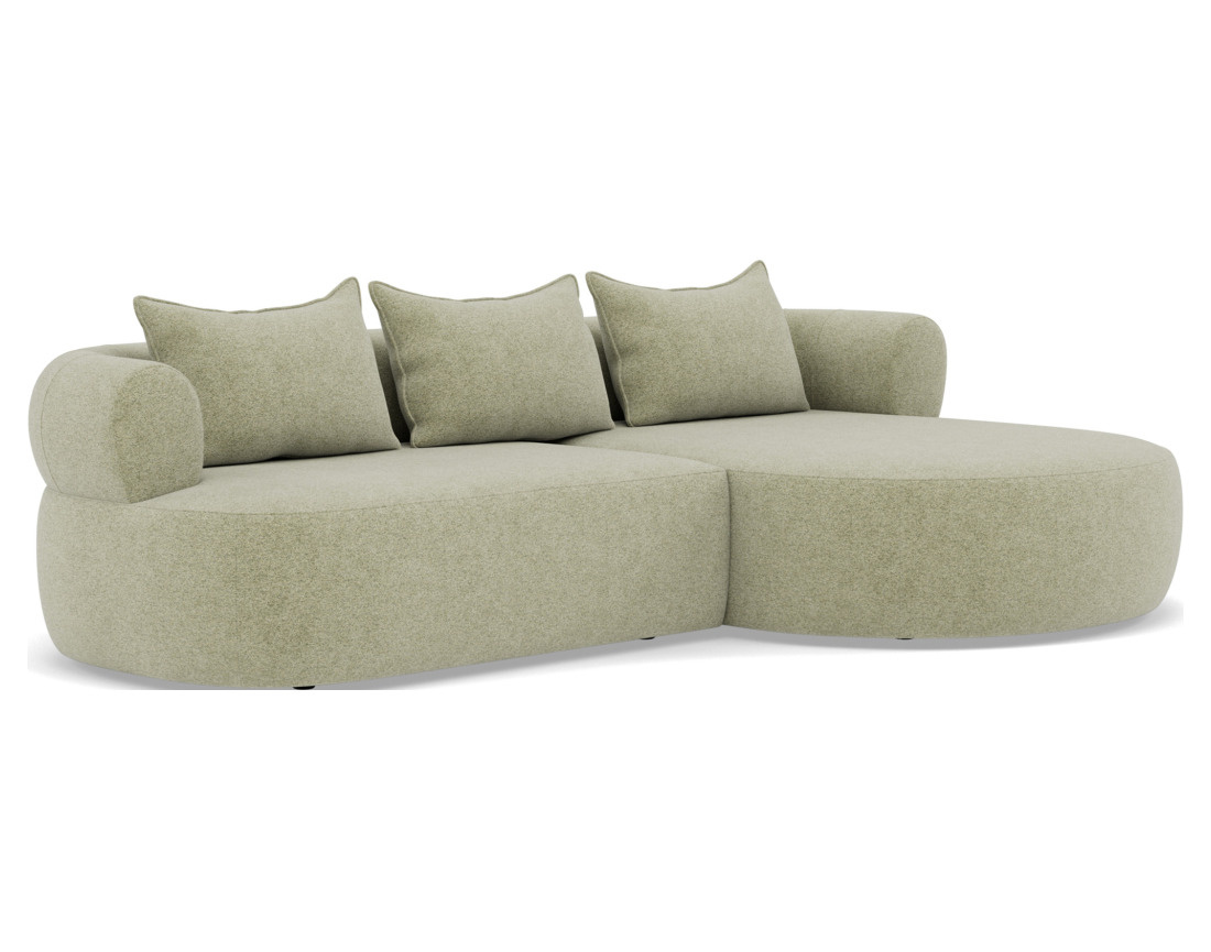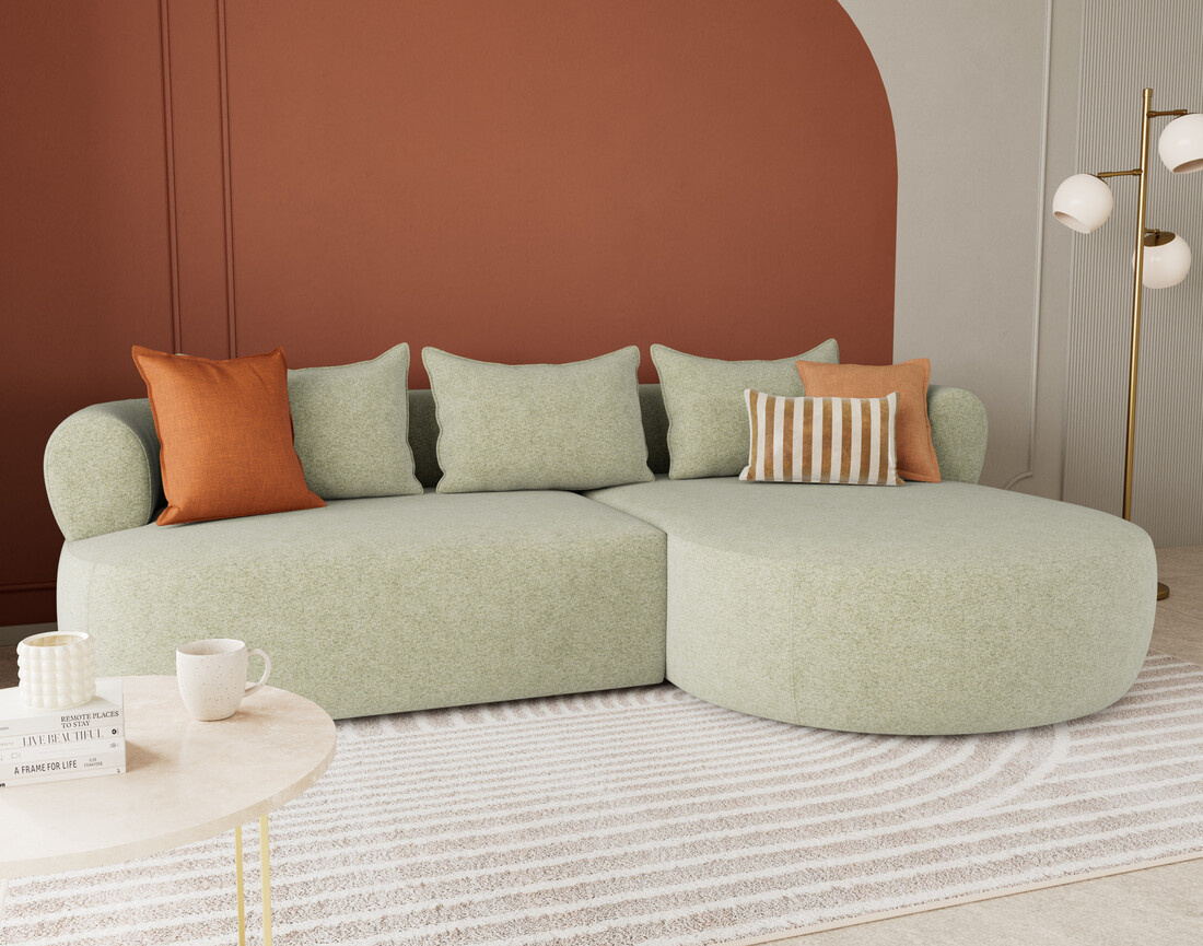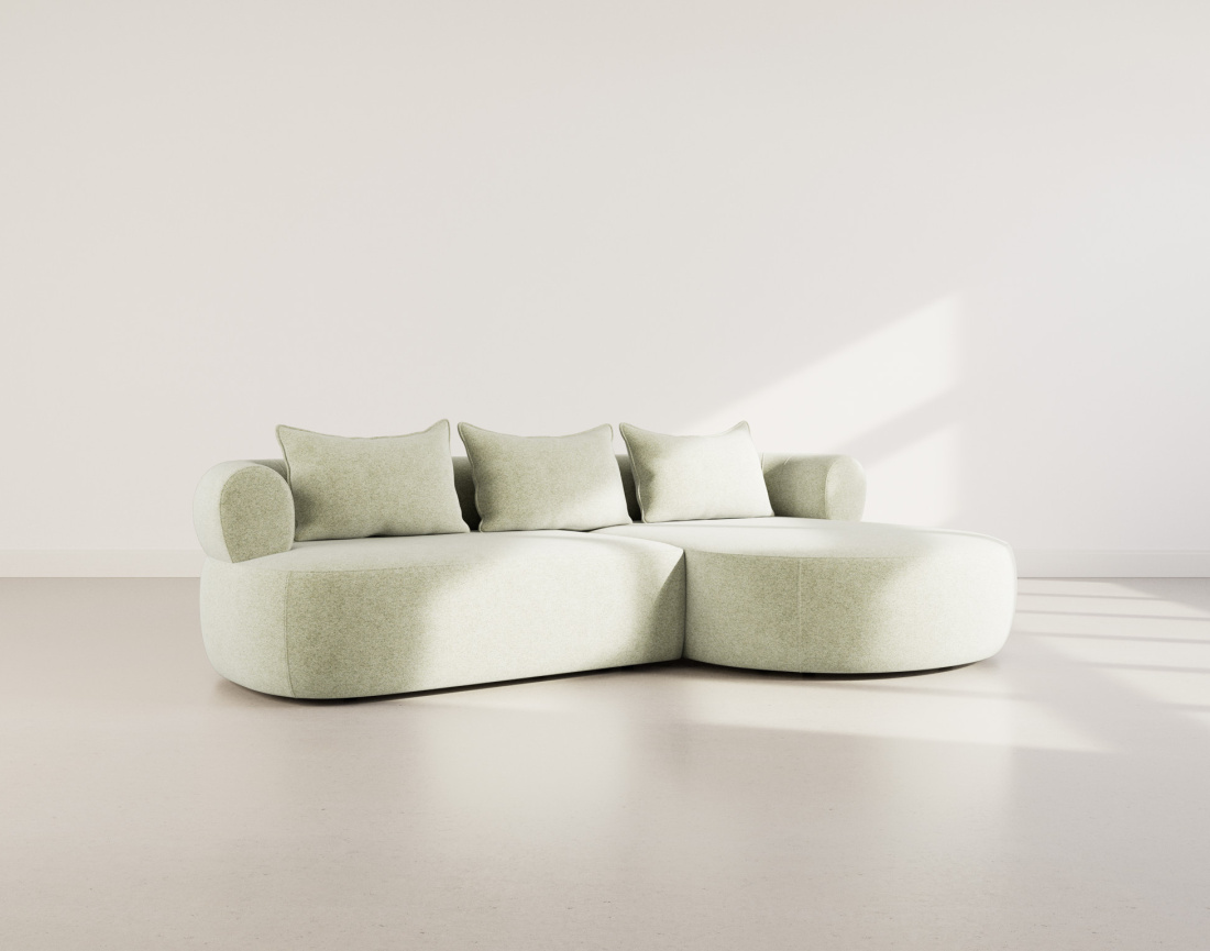 Le canapé d’angle droit Angela impose son style avec une silhouette élégante soulignée par des dossiers arrondis et une méridienne ultra tendance. Son design fluide et accueillant transforme votre salon en un espace cosy et chaleureux. Pensé pour le confort, il offre une belle largeur et une profondeur d’assise idéale pour s’installer longuement, que ce soit pour lire, discuter ou simplement se détendre.