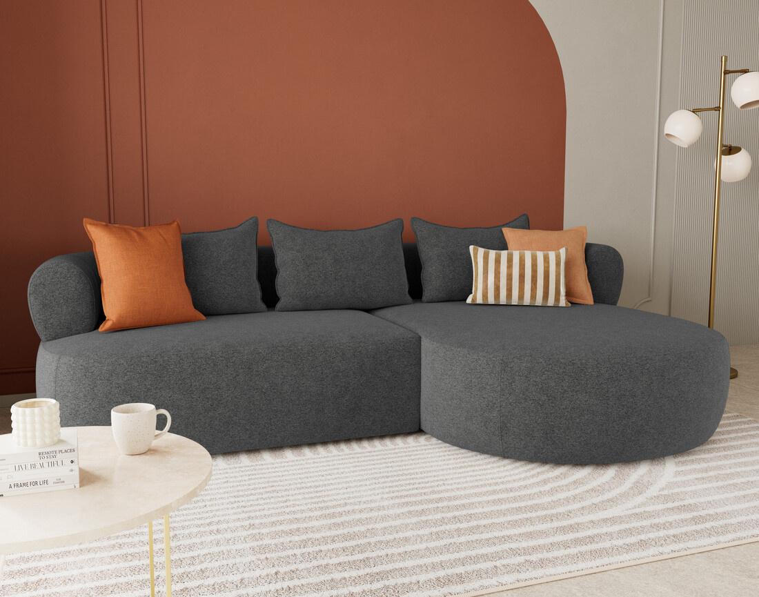 Le canapé d’angle droit Angela impose son style avec une silhouette élégante soulignée par des dossiers arrondis et une méridienne ultra tendance. Son design fluide et accueillant transforme votre salon en un espace cosy et chaleureux. Pensé pour le confort, il offre une belle largeur et une profondeur d’assise idéale pour s’installer longuement, que ce soit pour lire, discuter ou simplement se détendre.