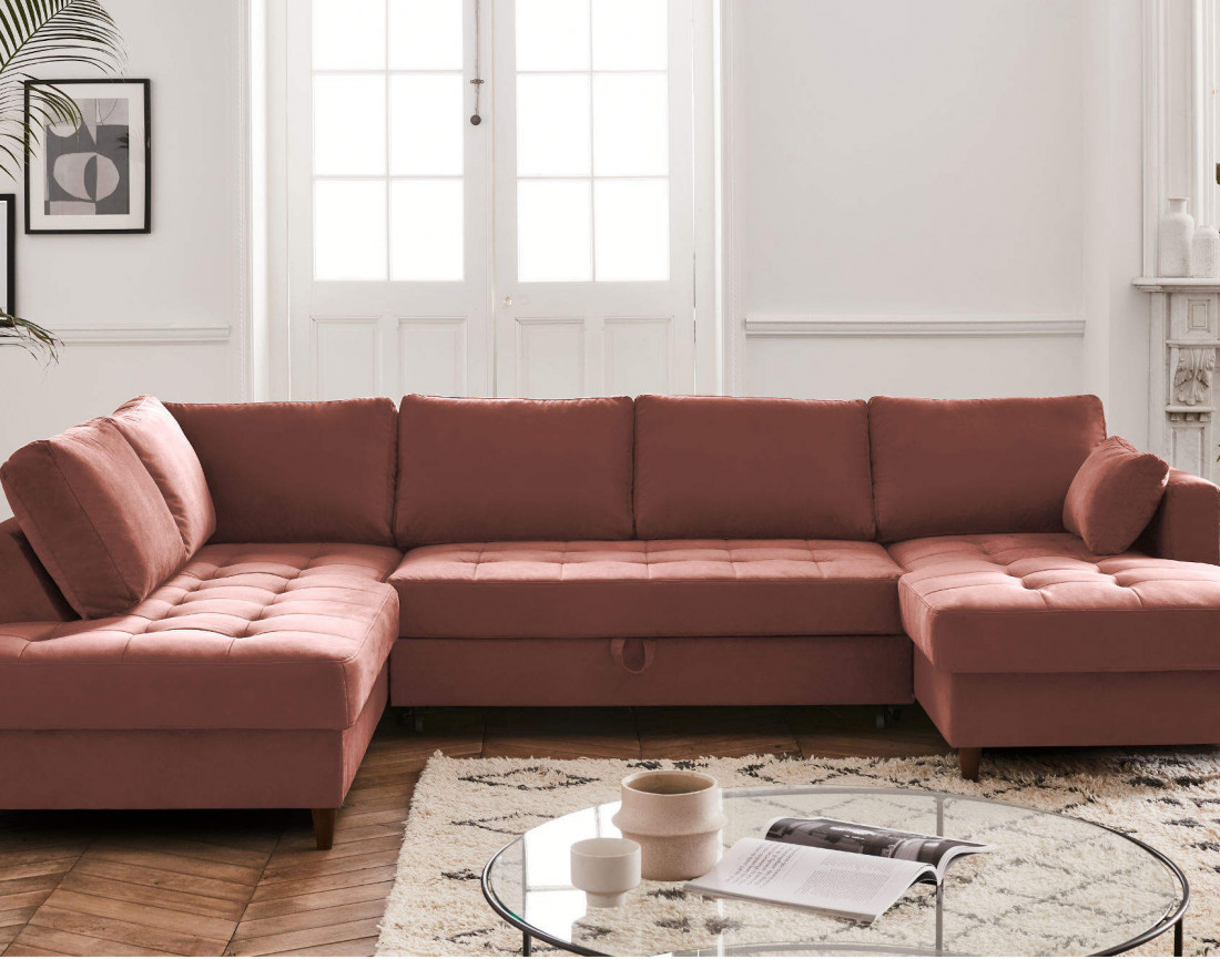 Ce joli canapé panoramique Anna plaira à toute la famille grâce à son style contemporain. Le revêtement en velours rend le canapé agréable au toucher. Son assise capitonnée donne un charme et un style unique qui conviendra parfaitement avec tout style de décoration d’intérieur. De plus, vous avez le choix dans les différents coloris proposés.