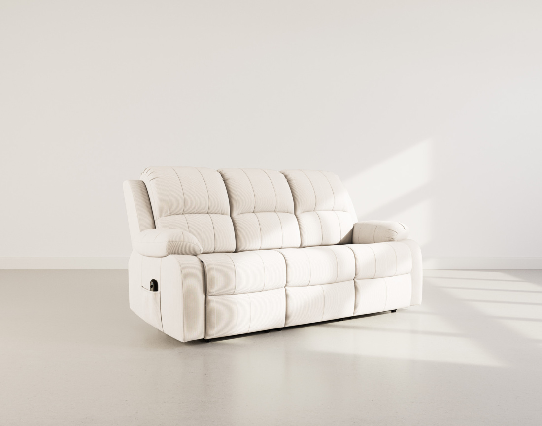 Armand - Canapé 3 places relax électrique en velours côtelé - beige