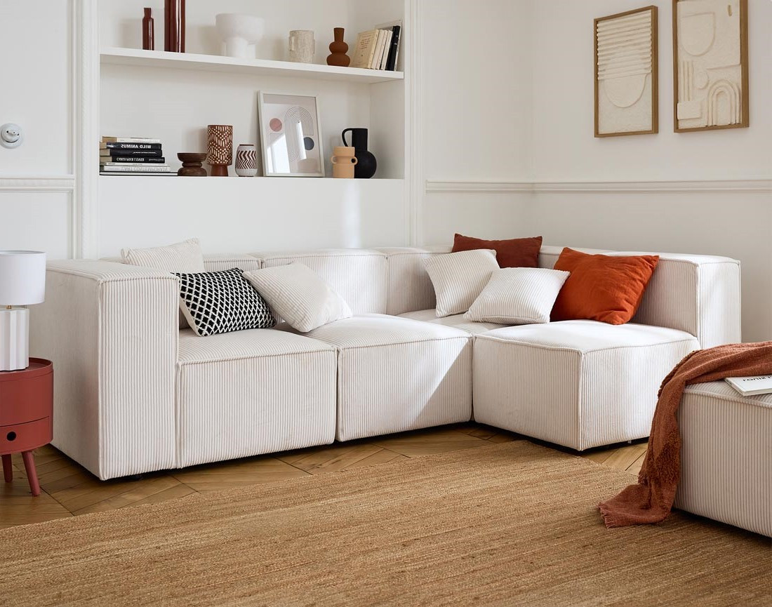 Arty - canapé modulable d'angle droit 4 places - en velours côtelé