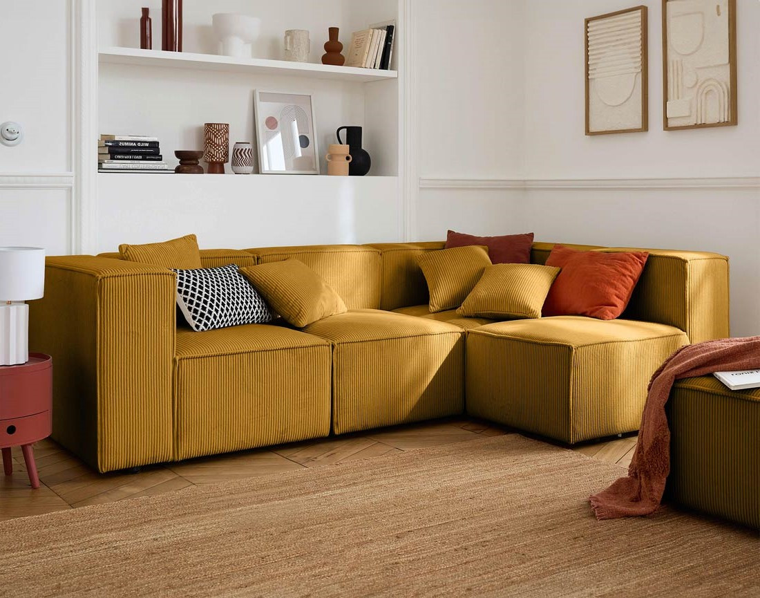Arty - canapé modulable d'angle droit 4 places - en velours côtelé