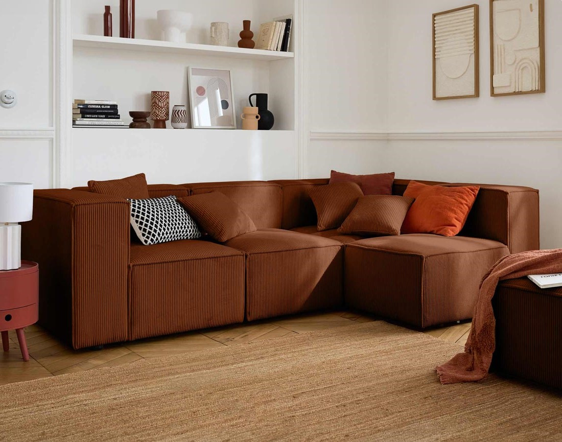 • Canapé modulable d'angle droit 4 places en velours côtelé Arty