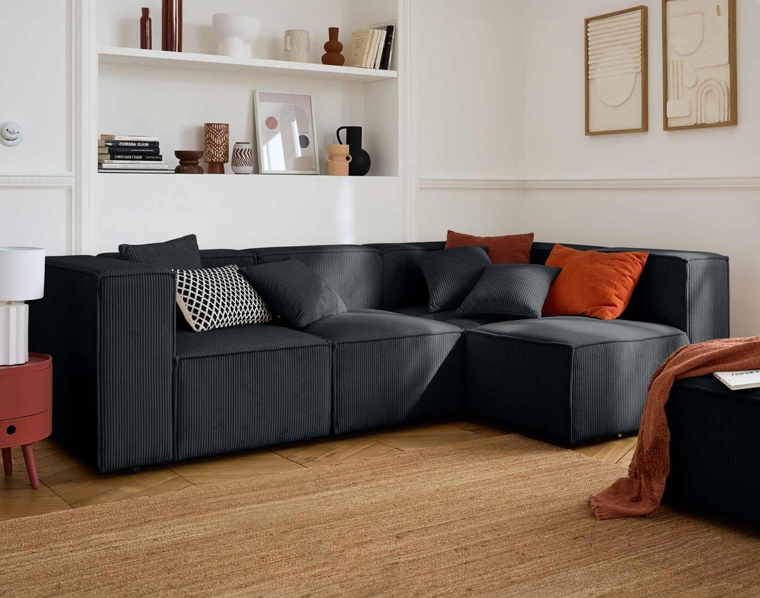 Arty - canapé modulable d'angle droit 4 places - en velours côtelé