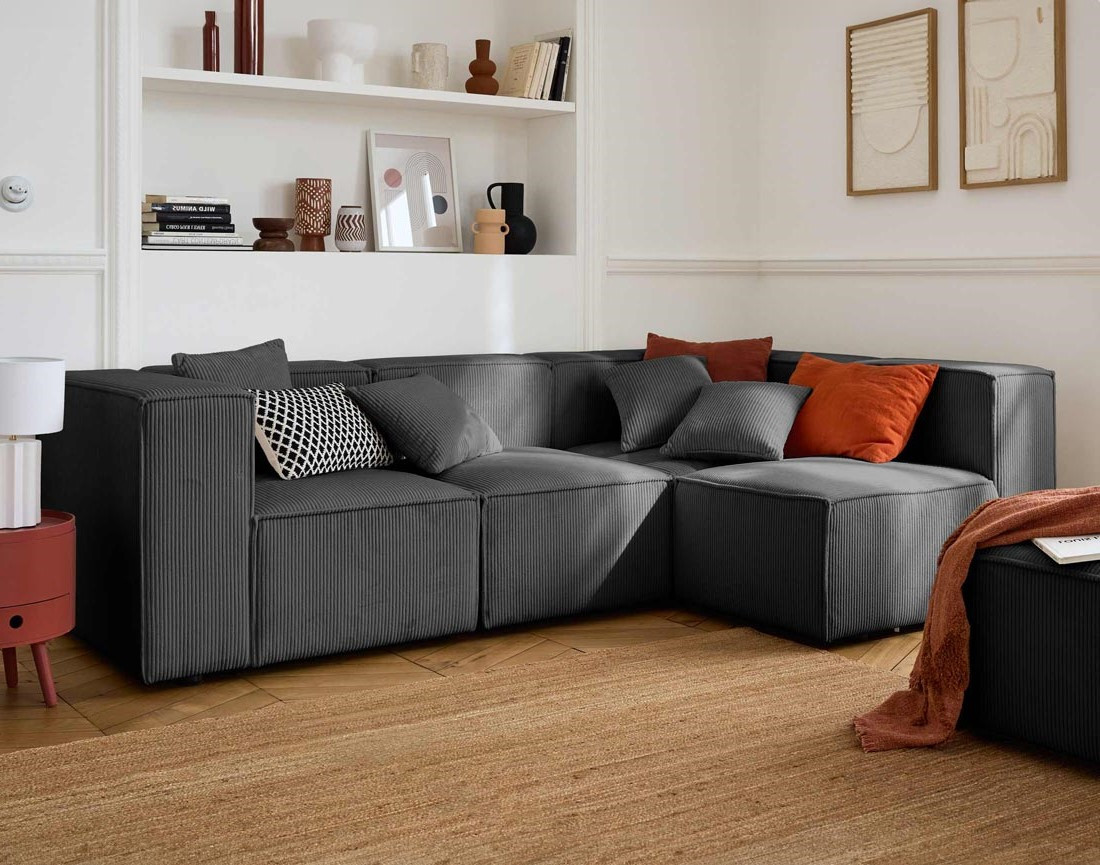 Arty - canapé modulable d'angle droit 4 places - en velours côtelé