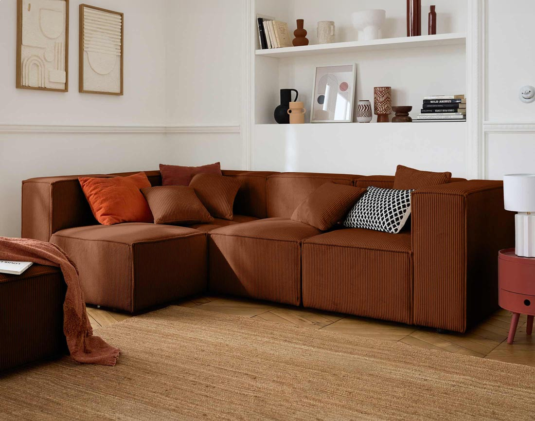 Arty - canapé modulable d'angle gauche 4 places - en velours côtelé