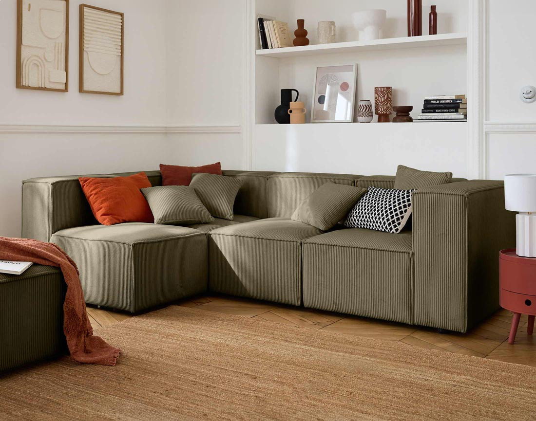 Arty - canapé modulable d'angle gauche 4 places - en velours côtelé