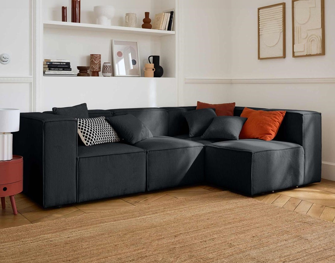 Les magnifiques teintes du module d’angle Arty vous permet de l’intégrer dans tous les styles de décoration : ces jolies couleurs, rehaussées par une texture velours côtelé, se font allègrement dans les décorations minimalistes, chaleureuses, modernes ou romantiques chic !