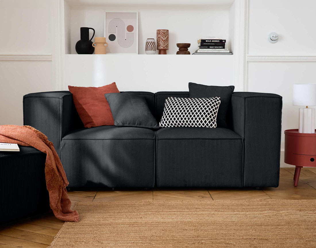 Avec son angle droit super pratique, ses accoudoirs hauts, son coussin confortable et son revêtement en velours côtelé tout doux, le module d’assise Arty s’adopte au premier coup d’œil !