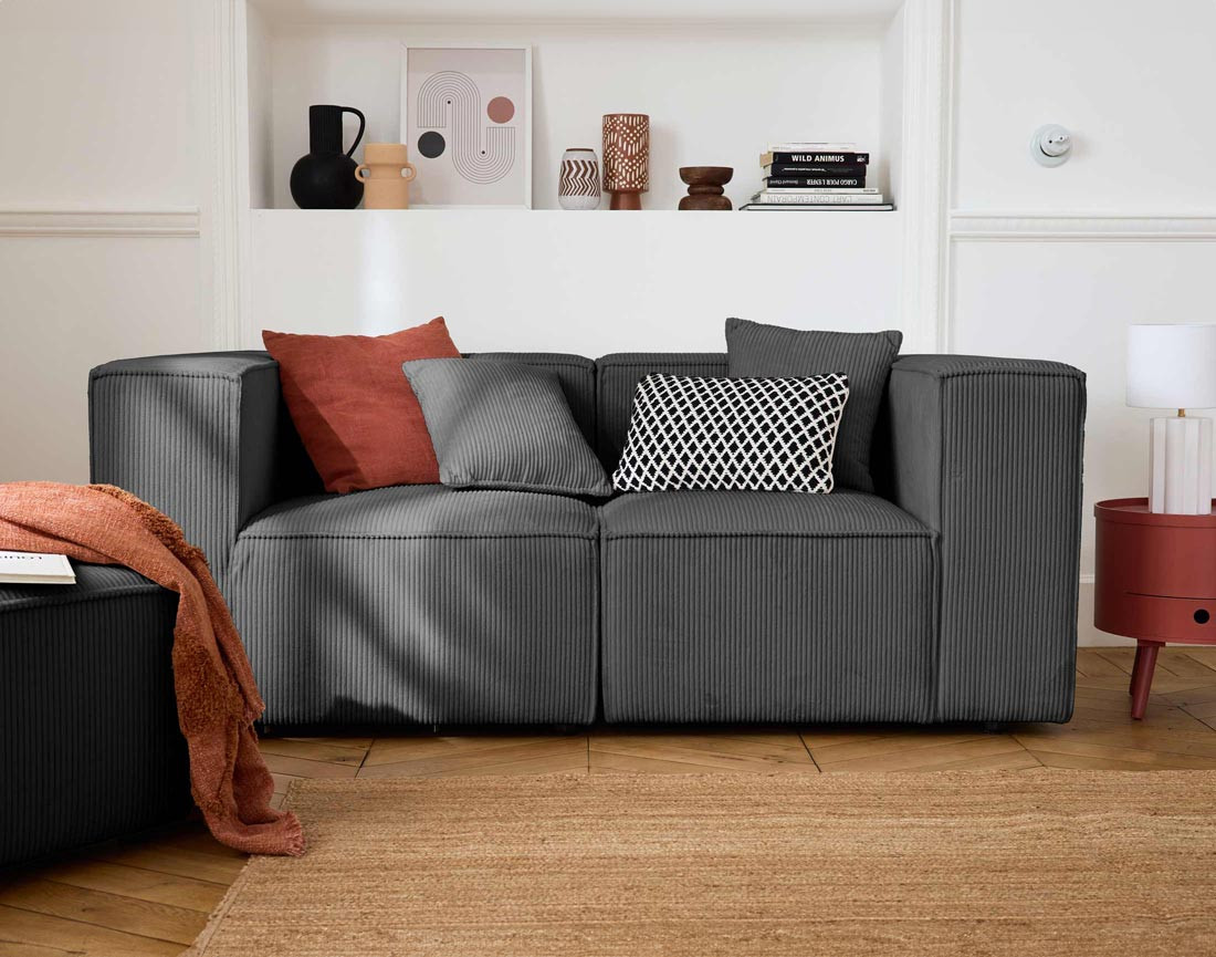 Avec son angle droit super pratique, ses accoudoirs hauts, son coussin confortable et son revêtement en velours côtelé tout doux, le module d’assise Arty s’adopte au premier coup d’œil !