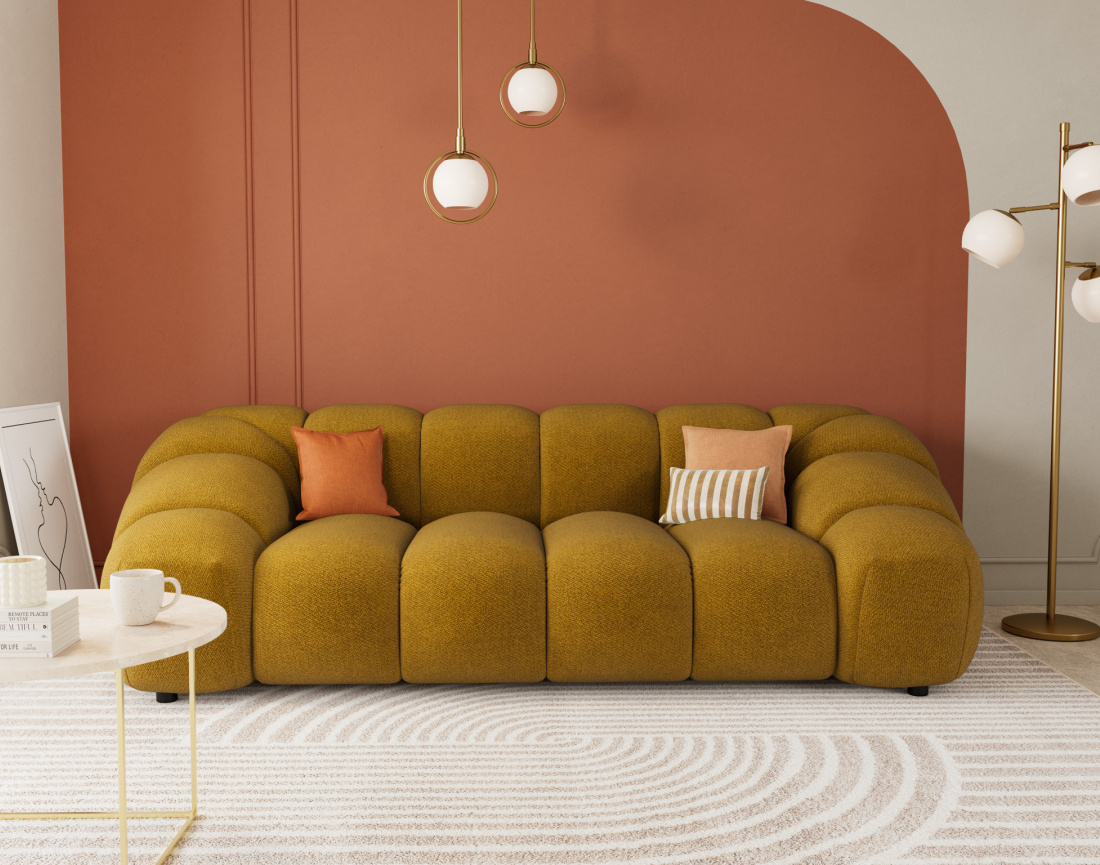 Avec ses courbes généreuses et son allure pleine de douceur, le canapé Ava 3 places s’impose comme une pièce centrale aussi audacieuse que confortable. Il séduit par son esthétique sculpturale, tout en rondeur, qui transforme instantanément votre salon en un espace contemporain et chaleureux. Chaque segment de l’assise et du dossier évoque un nuage moelleux, tout en assurant un maintien optimal grâce à une structure ferme, pensée pour durer.