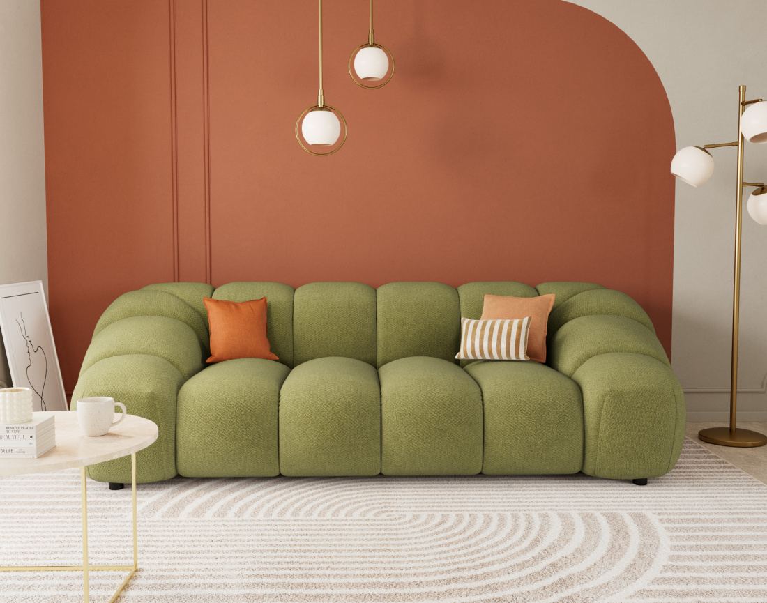Avec ses courbes généreuses et son allure pleine de douceur, le canapé Ava 3 places s’impose comme une pièce centrale aussi audacieuse que confortable. Il séduit par son esthétique sculpturale, tout en rondeur, qui transforme instantanément votre salon en un espace contemporain et chaleureux. Chaque segment de l’assise et du dossier évoque un nuage moelleux, tout en assurant un maintien optimal grâce à une structure ferme, pensée pour durer.