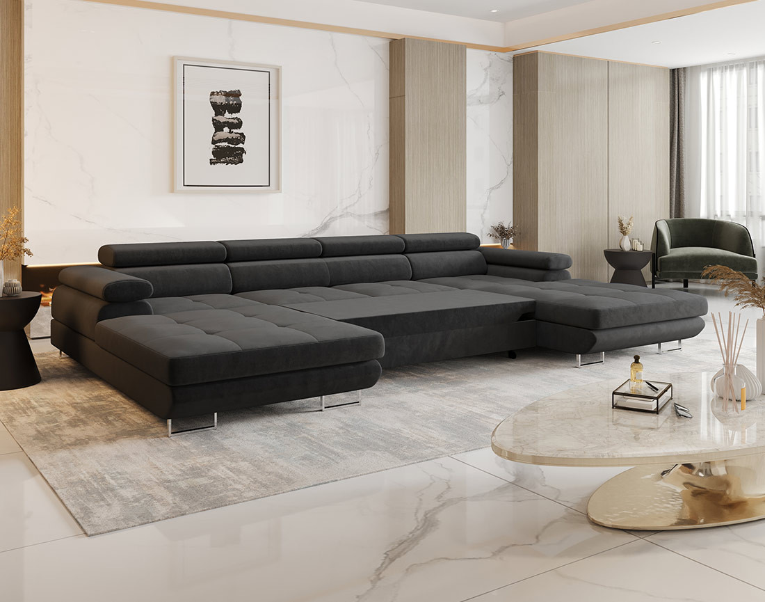 Ayden ne se contente pas d’être beau : il est aussi incroyablement pratique. Grâce à son convertible intégré, il se transforme en un lit d’appoint en quelques secondes. Ses coffres discrets offrent un rangement facile pour plaids, oreillers ou coussins. Mais ce qui fait vraiment la différence ? Ses têtières réglables, qui permettent à chacun de trouver sa position idéale, que ce soit pour lire, discuter ou s’étendre en toute tranquillité. Avec Ayden, chaque moment devient une parenthèse de confort sur mesure.
