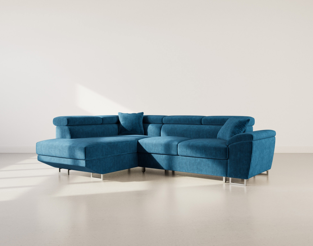 Transformez votre salon en un espace à la fois chic et accueillant avec le Baoji, un canapé d'angle gauche 5 places conçu pour sublimer votre intérieur. Son revêtement en velours côtelé, d’une douceur exquise, invite à la détente tout en ajoutant une touche de caractère à votre décoration. Ses pieds en métal chromé, élégants et raffinés, créent un contraste moderne qui attire tous les regards. Grâce à ses têtières ajustables, adaptez votre confort selon vos envies et profitez d’un maintien optimal pour des instants de relaxation absolue.