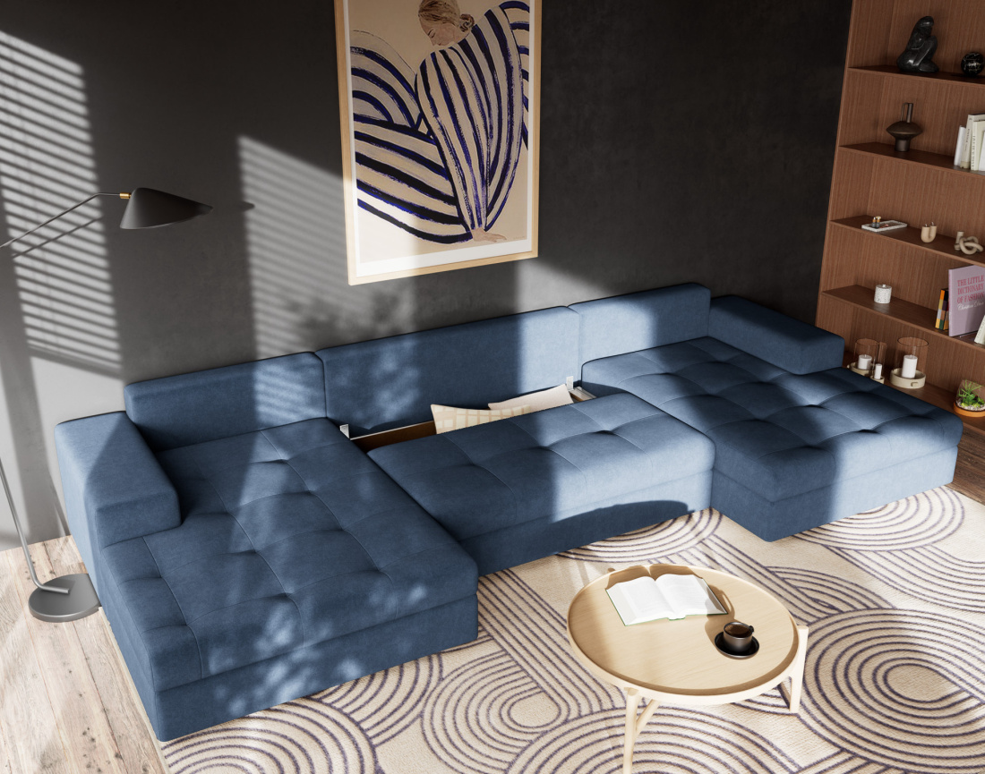 Pensé pour répondre à tous vos besoins, le canapé Bastian se transforme facilement en lit d’appoint spacieux, parfait pour accueillir vos invités. Son grand coffre de rangement intégré permet de garder plaids et coussins à portée de main, tout en gardant un salon toujours bien rangé. Confortable, fonctionnel et esthétique, ce canapé en U convertible, signé Best mobilier, combine à la perfection style contemporain et praticité du quotidien.