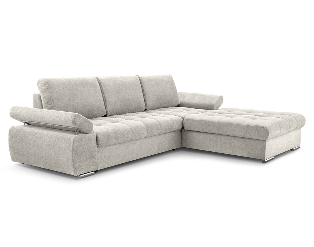 Bianca - Canapé d'angle droit 4 places convertible avec coffre en tissu texturé