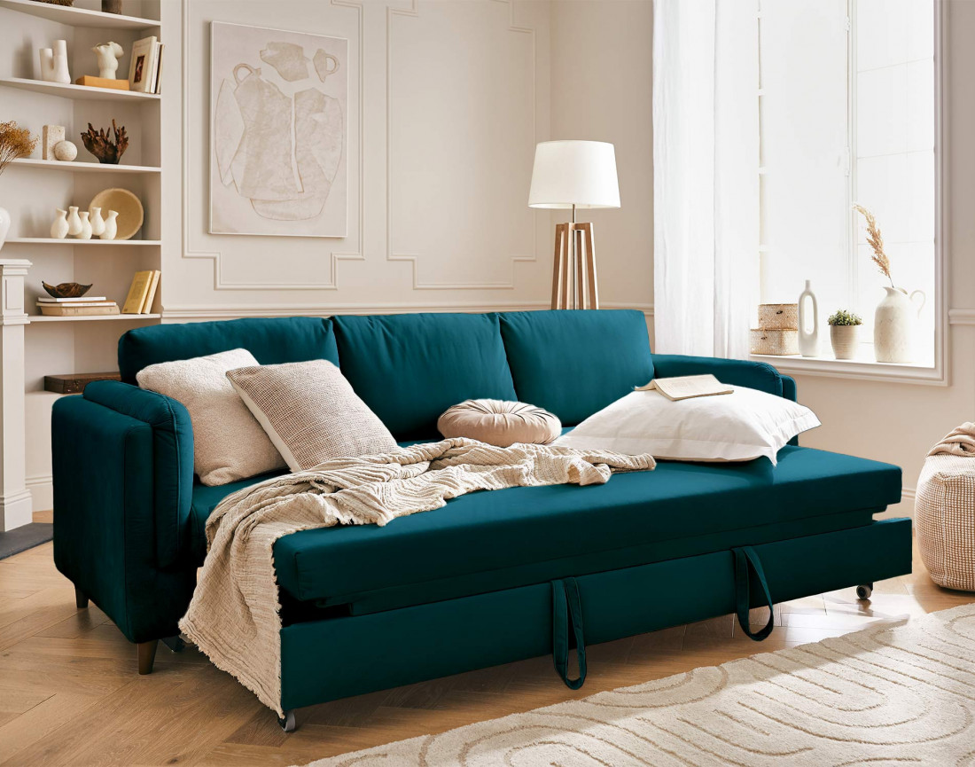 Fabriqué en Europe, le canapé 3 places convertible Brooke a été travaillé afin d’avoir un confort maximal. Ses larges dimensions vous permettront d’être installé confortablement. La fonction convertible sous l’assise du canapé Brooke se déploie en quelques secondes afin d’accueillir occasionnellement vos proches.