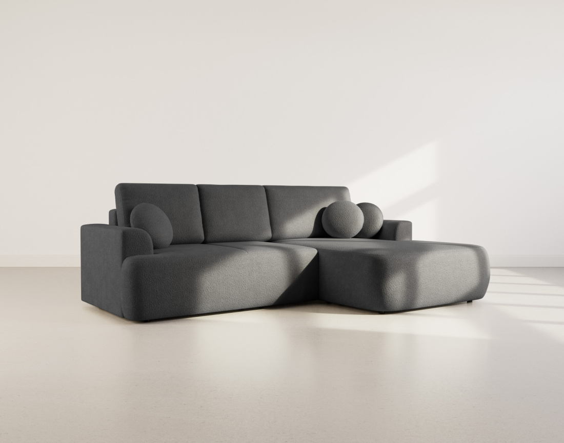 Candela - canapé d'angle droit 4 places - convertible avec coffre - en tissu bouclette - noir