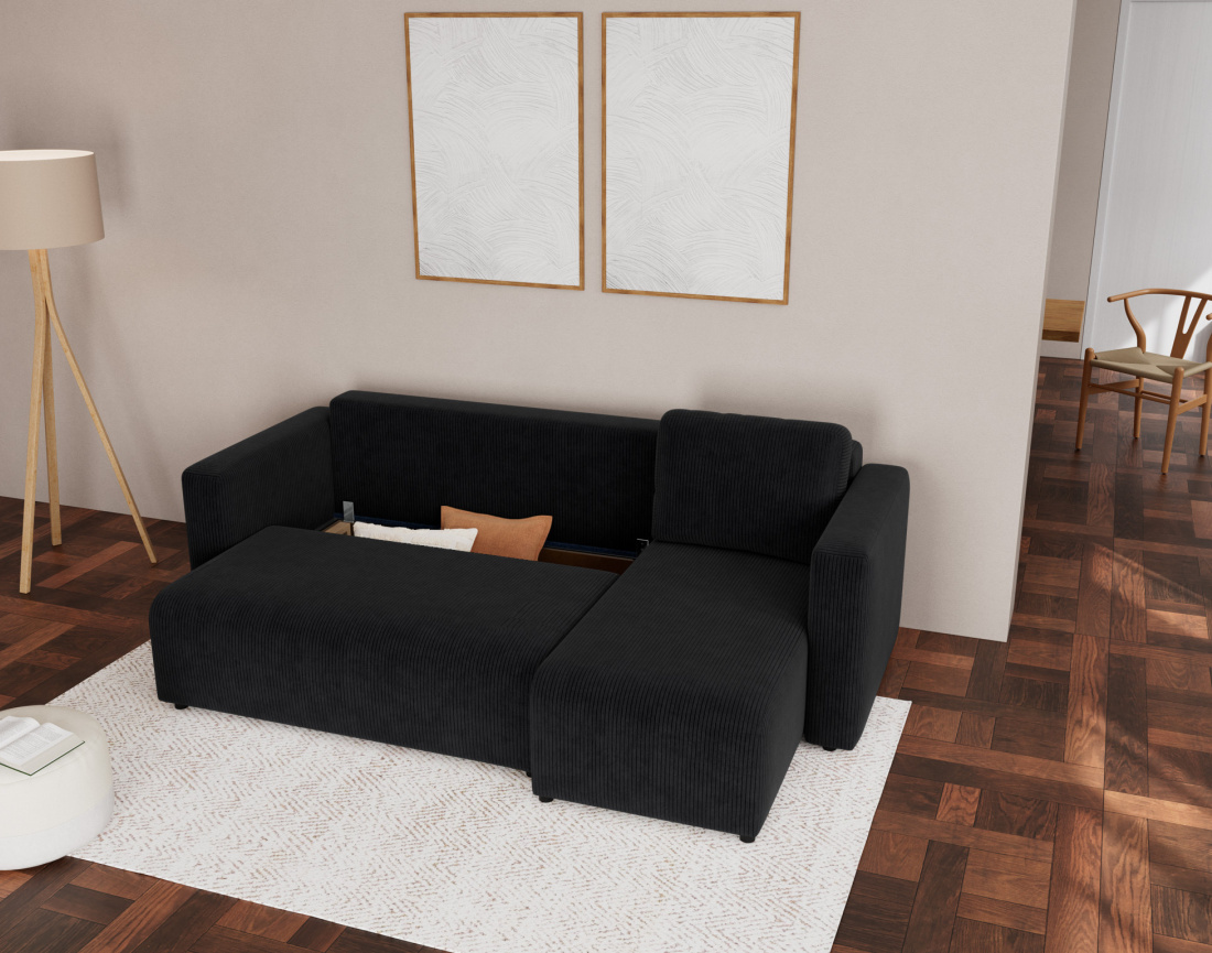 Canopy - canapé d'angle réversible 4 places convertible avec coffre en velours côtelé