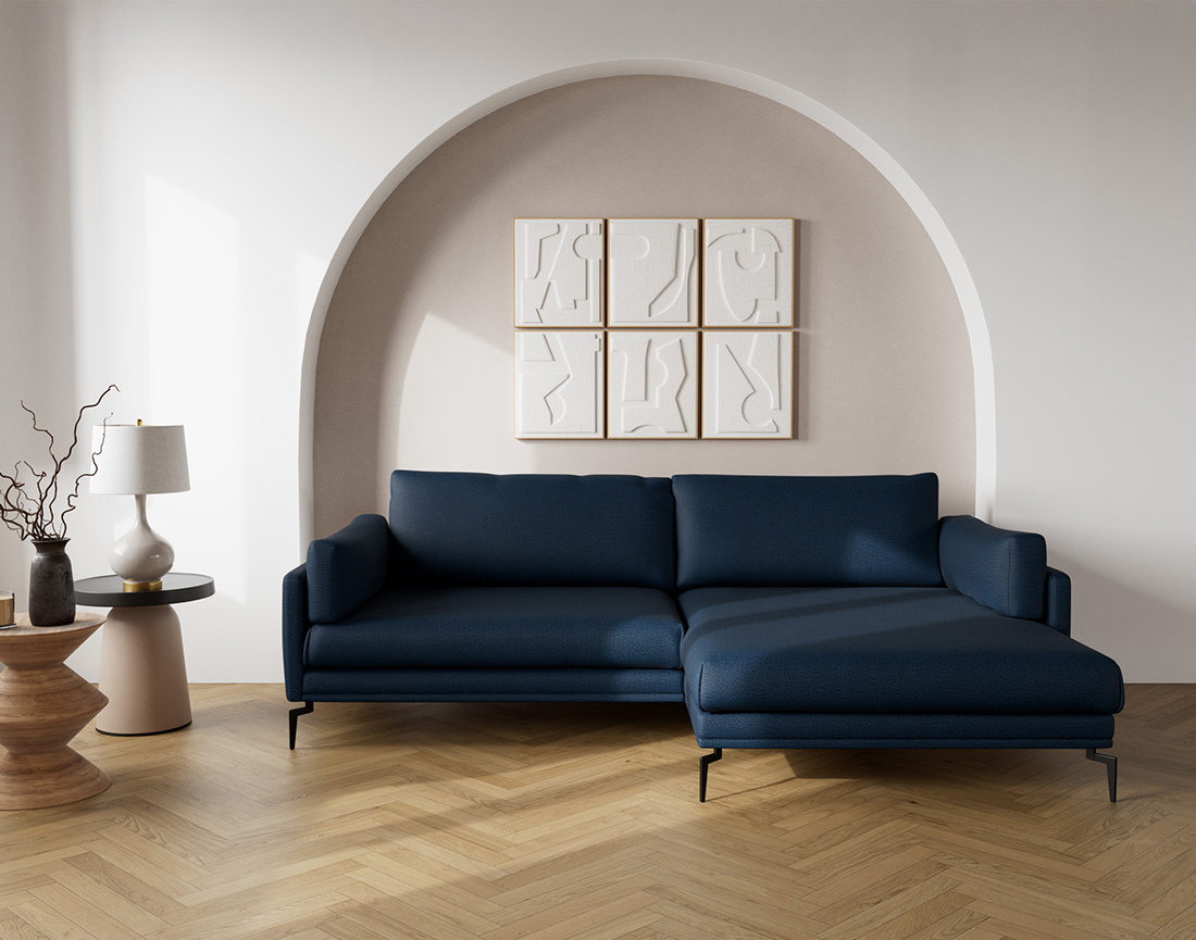 • Canapé d'angle droit 4 places en tissu texturé Carlos