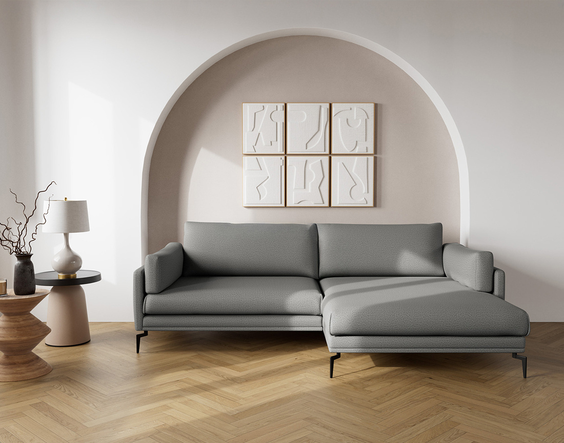 Avec sa belle amplitude et ses lignes franches, le canapé d’angle droit 4 places Carlos séduit d’emblée. Ses proportions généreuses offrent une assise profonde et accueillante, idéale pour s’étendre, s’installer à plusieurs ou simplement profiter d’un vrai moment de détente. Pensé pour combiner esthétique contemporaine et bien-être au quotidien, il s’impose comme une pièce forte, sans jamais perdre en confort.