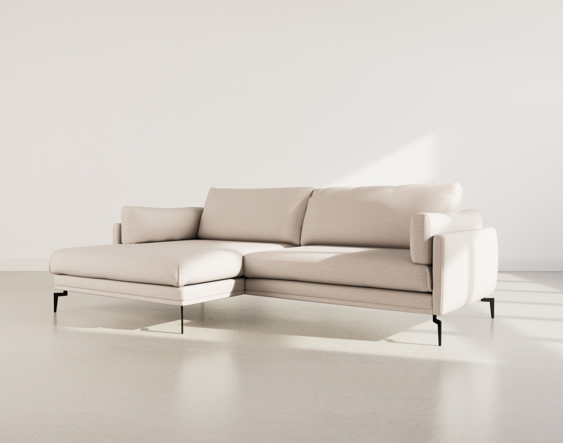 Le canapé d’angle gauche 4 places Carlos s’impose avec équilibre et style. Son design structuré et ses dimensions généreuses en font une pièce centrale idéale pour habiller un salon. Grâce à sa profondeur d’assise et à ses larges coussins moelleux, il offre une sensation immédiate de confort. Sa configuration en angle gauche est parfaite pour créer un espace fluide, tout en délimitant visuellement un coin cosy dans la pièce.