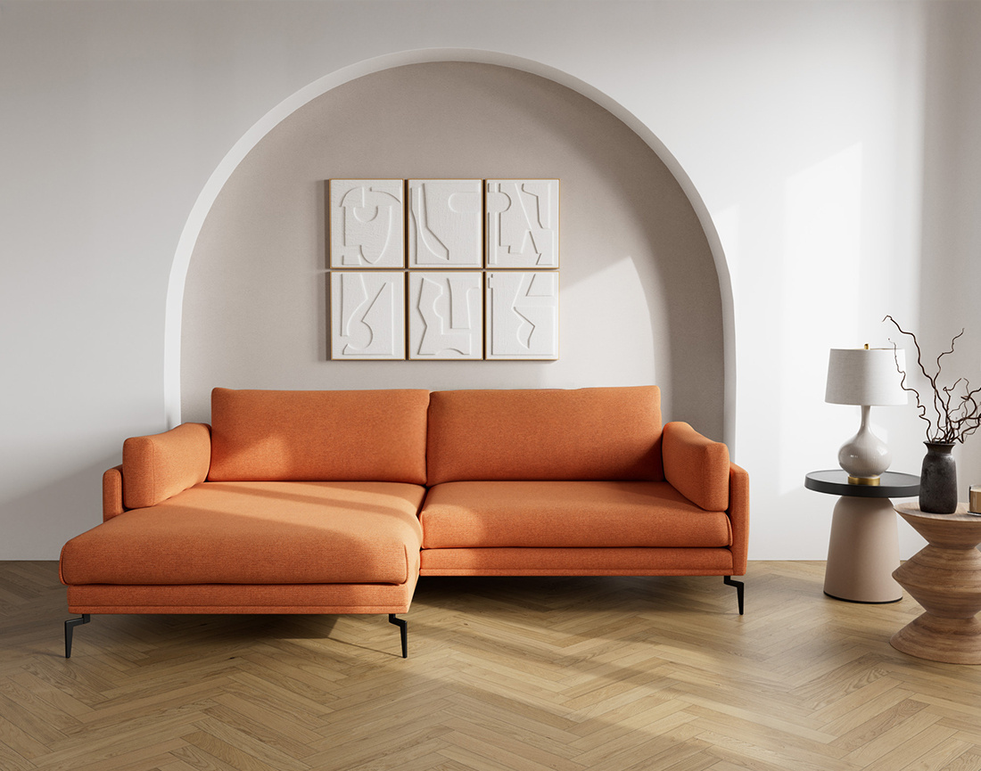 Le canapé d’angle gauche 4 places Carlos s’impose avec équilibre et style. Son design structuré et ses dimensions généreuses en font une pièce centrale idéale pour habiller un salon. Grâce à sa profondeur d’assise et à ses larges coussins moelleux, il offre une sensation immédiate de confort. Sa configuration en angle gauche est parfaite pour créer un espace fluide, tout en délimitant visuellement un coin cosy dans la pièce.