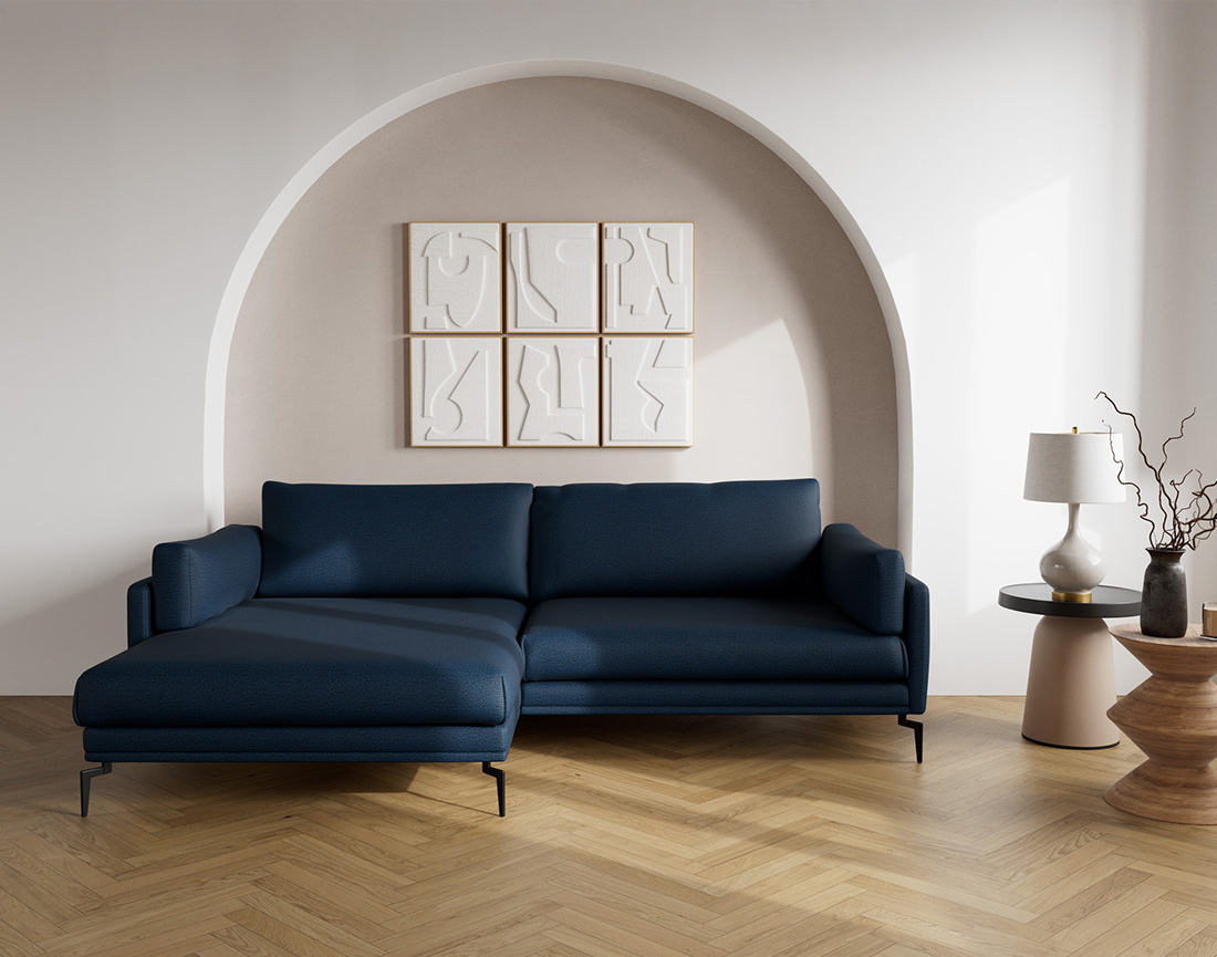 Le canapé d’angle gauche 4 places Carlos s’impose avec équilibre et style. Son design structuré et ses dimensions généreuses en font une pièce centrale idéale pour habiller un salon. Grâce à sa profondeur d’assise et à ses larges coussins moelleux, il offre une sensation immédiate de confort. Sa configuration en angle gauche est parfaite pour créer un espace fluide, tout en délimitant visuellement un coin cosy dans la pièce.