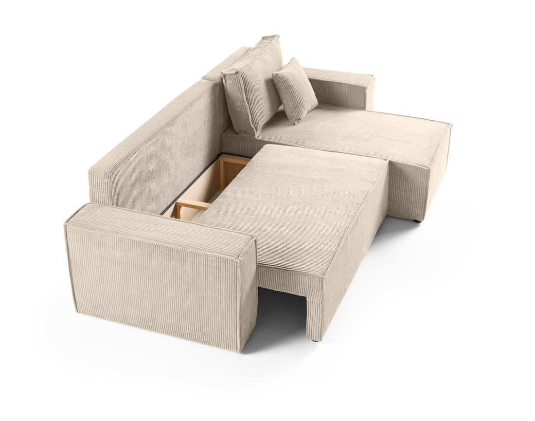 Cezanne - canapé d'angle réversible - 4 places - convertible avec coffre - en velours côtelé