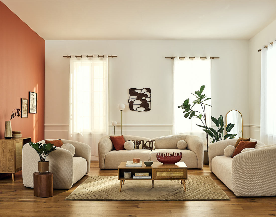 - La forme organique et tendance de ce canapé combine courbes fluides et confort optimal, pour un espace moderne et accueillant
