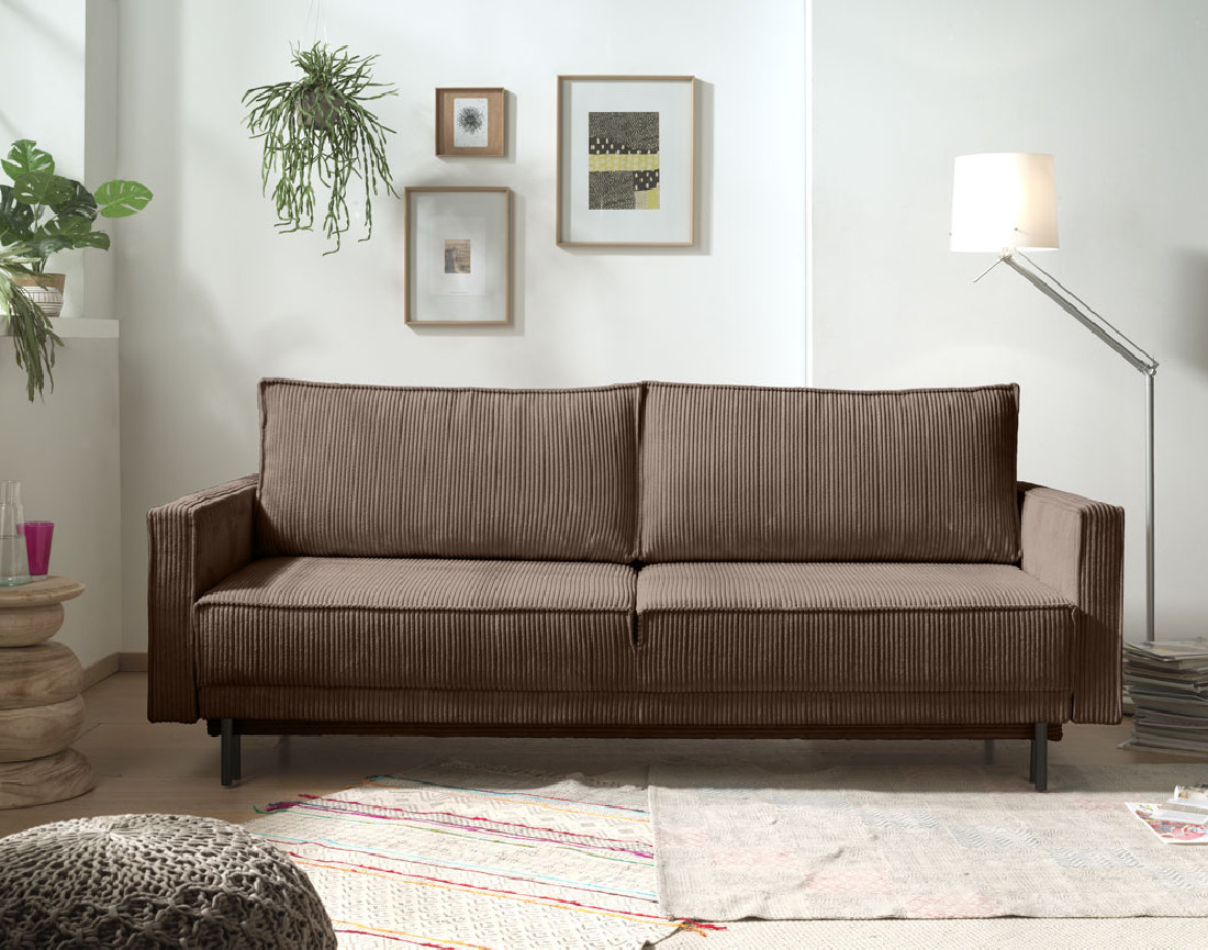 Charlie - canapé 3 places convertible avec coffre - en velours côtelé - marron