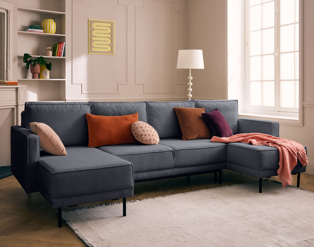 Grâce à ses dimensions généreuses et son angle en U, le canapé Charlie vous donne la possibilité d’installer confortablement 7 convives : de quoi accueillir en tout confort vos amis et votre famille ! Ce joli modèle est orné d’un beau tissu facile à entretenir, qui se fondra aisément dans votre décoration intérieure : que vous préfériez le style contemporain, élégant, minimaliste ou moderne, le canapé 7 places Charlie vous apportera entière satisfaction. Vous pouvez de plus personnaliser l’allure de votre canapé Charlie grâce aux teintes à votre disposition : choisissez-le en beige, gris, terracotta, vert ou jaune, selon vos goûts et l’effet désiré ! Découvrez également les autres éléments de la collection Charlie, afin d’assortir votre nouveau canapé à un fauteuil ou un pouf présentant un design similaire. De quoi concevoir un intérieur soigné et très harmonieux !