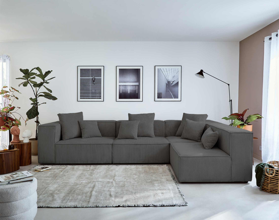 Colombine - canapé modulable d'angle droit - 6 places - en velours côtelé - gris foncé