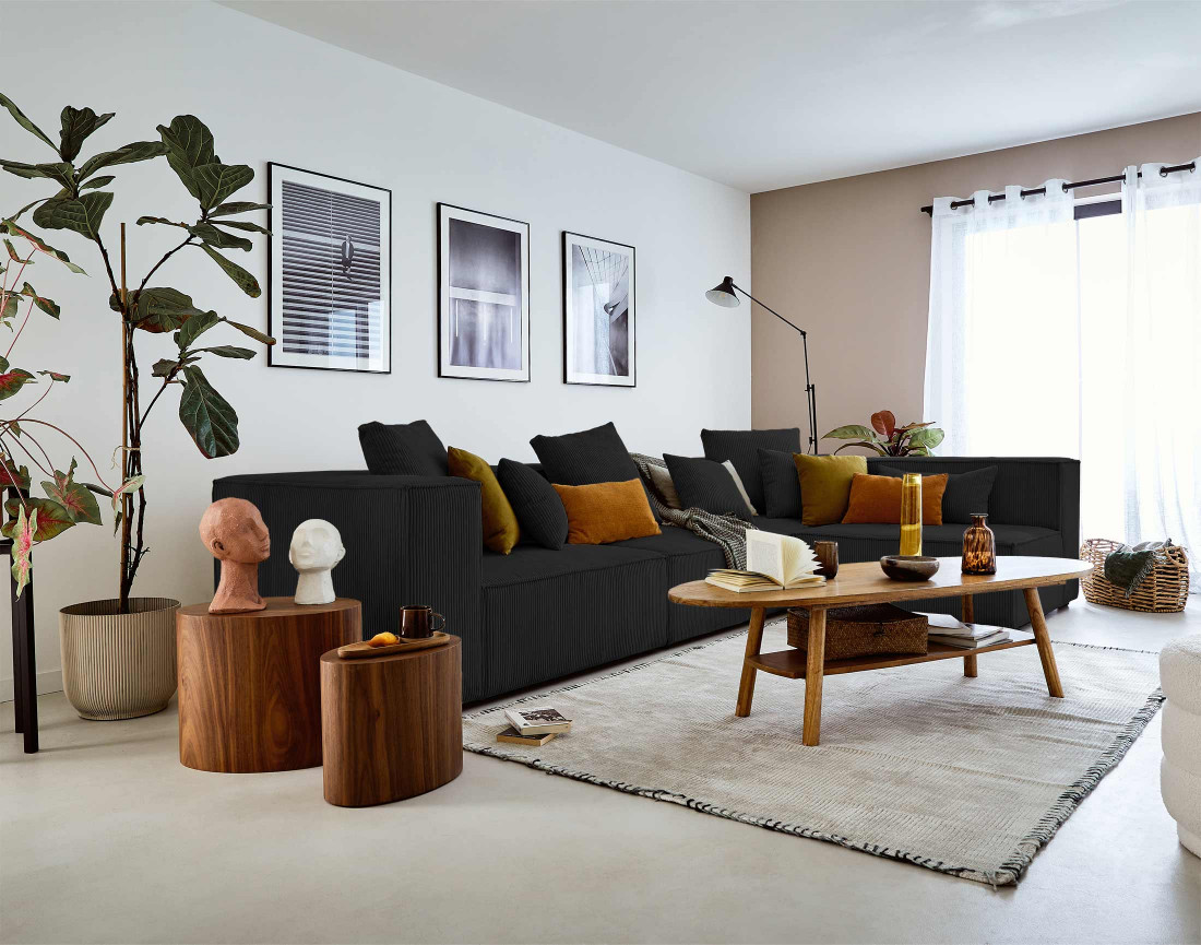 Composé de quatre éléments séparables, le canapé modulable 6 places Colombine est idéal pour passer des moments chaleureux à la maison. Agencez votre salon selon vos envies en attachant et en détachant les éléments modulables et rendez ainsi, votre intérieur unique et original ! Vous allez adorer ses formes linéaires et son assise moelleuse. Ce canapé est également revêtu de velours côtelé qui vous offre de nombreux avantages en matière de confort.