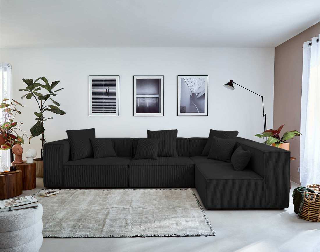 Colombine - canapé modulable d'angle droit - 6 places - en velours côtelé
