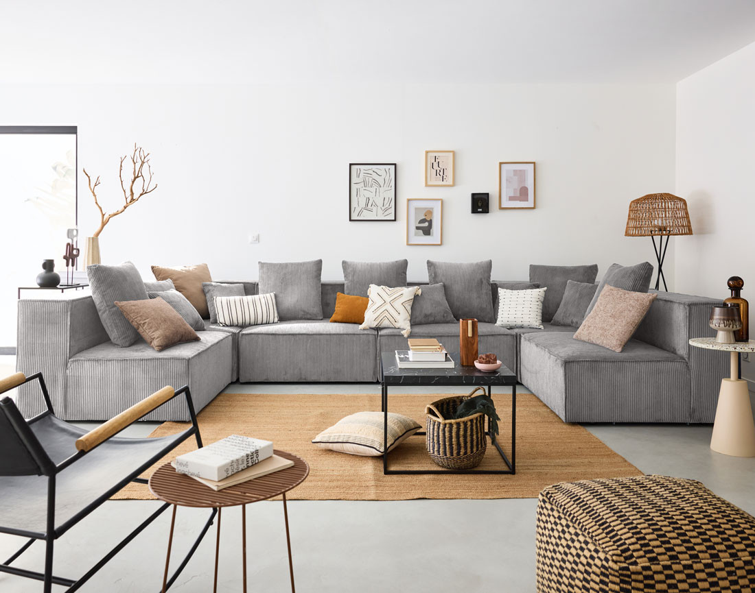 Colombine - canapé modulable panoramique - 7 places - en velours côtelé