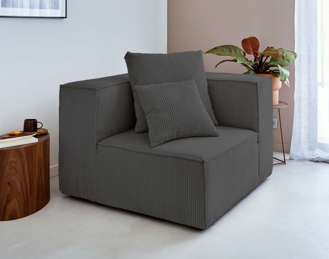 Colombine - module d'assise d'angle réversible - en velours côtelé - gris foncé