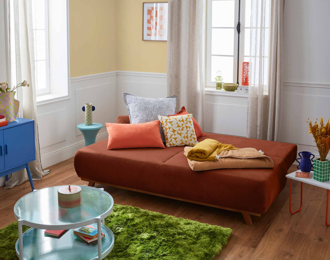 - Grâce à son dossier rabattable, ce canapé devient un lit d'appoint en un instant
