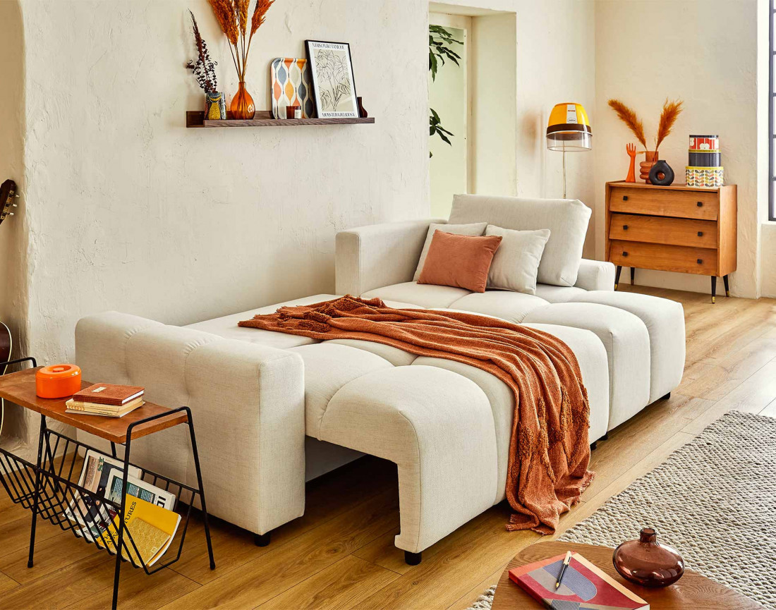 Grâce à sa structure entièrement matelassée et rebondie, le canapé Crocus vous procure un confort ferme. Outre son design, vous serez également séduit par ses fonctionnalités. En effet, disposant d’une fonction convertible pour un usage occasionnel, vous pourrez ainsi profiter d’agréables moments de détente ou accueillir vos proches. Enfin, idéal pour y ranger plaids et coussins, ce canapé dispose d’un coffre de rangement sous son assise.