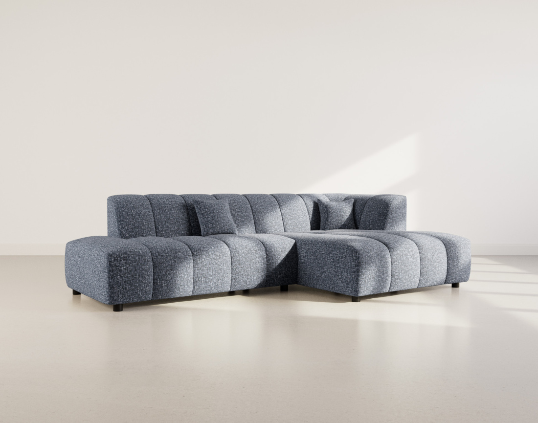 Curtis - canapé d'angle droit 4 places sans accoudoir en tissu texturé - bleu