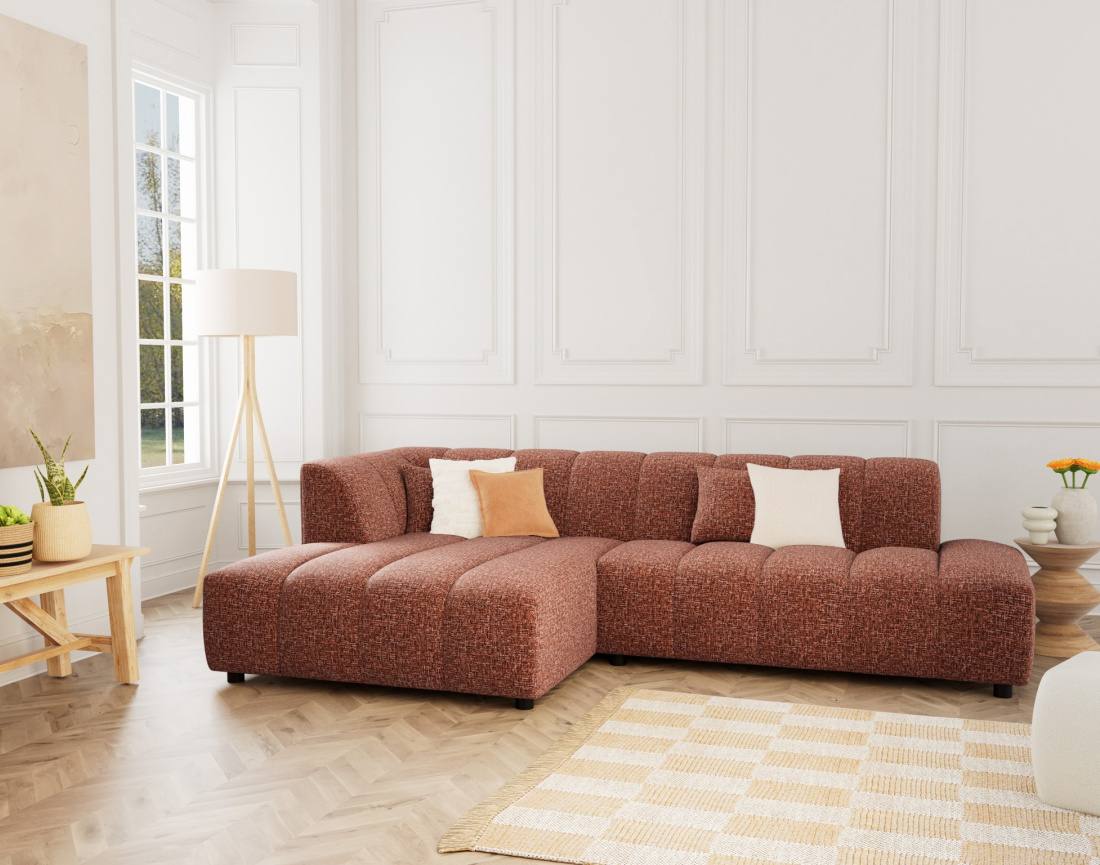Réinventez votre espace de vie avec Curtis, un canapé d’angle gauche 4 places sans accoudoir au style contemporain affirmé. Son format ouvert et minimaliste insuffle une belle légèreté à votre salon tout en favorisant la convivialité. Les lignes nettes et les proportions équilibrées dessinent une silhouette moderne, tandis que le tissu texturé et les coutures marquées apportent une signature visuelle forte, à la fois sobre et graphique.