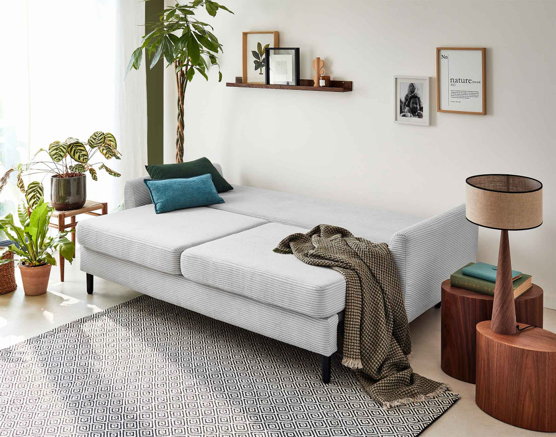• Canapé 3 places convertible avec coffre en velours côtelé Dan