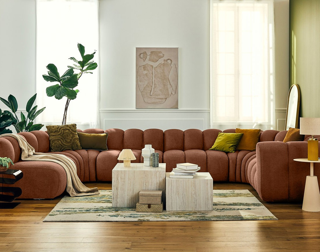 Vous cherchez un canapé confortable et convivial ? Le canapé Debbie 7 places est fait pour vous ! Avec ses dimensions spacieuses de 402 cm de largeur et 220 cm de profondeur, il est conçu pour les grands salons. Et il est absolument parfait pour les moments partagés en famille ou entre amis. C’est un canapé panoramique et modulable, qui peut s’adapter à vos envies et à vos besoins, au quotidien : attachez ou détachez les modules pour configurer un espace personnalisé. Sa disposition panoramique avec un angle gauche est idéale pour structurer les grandes pièces et créer un cocon chaleureux. Son revêtement en tissu texturé est très doux au toucher. Il vous enveloppe de douceur et vous permet de choisir la couleur qui s’intègre le mieux dans votre décoration intérieure : bleu, rose, vert, noir, taupe, beige, terracotta et gris.