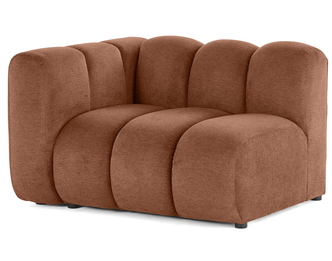Le module d’assise gauche Debbie est l’élément parfait pour laisser libre cours à votre imagination et configurer votre salon selon vos envies. Ces configurations personnalisées vous permettent d’imaginer des intérieurs qui vous ressemblent et que vous ne retrouverez nulle part ailleurs. Et Debbie ne fait pas du tort au confort avec des éléments qui donnent envie de s’y lover durant des heures. Le revêtement est en tissu texturé, très doux. Sa structure en panneaux de particules, fibre de bois et bois, lui confère robustesse et stabilité. Le garnissage en mousse polyuréthane haute densité, associé aux ressorts ondulés, assure une assise ferme. Debbie, c'est donc un mélange astucieux entre esthétisme, confort, élégance et durabilité.