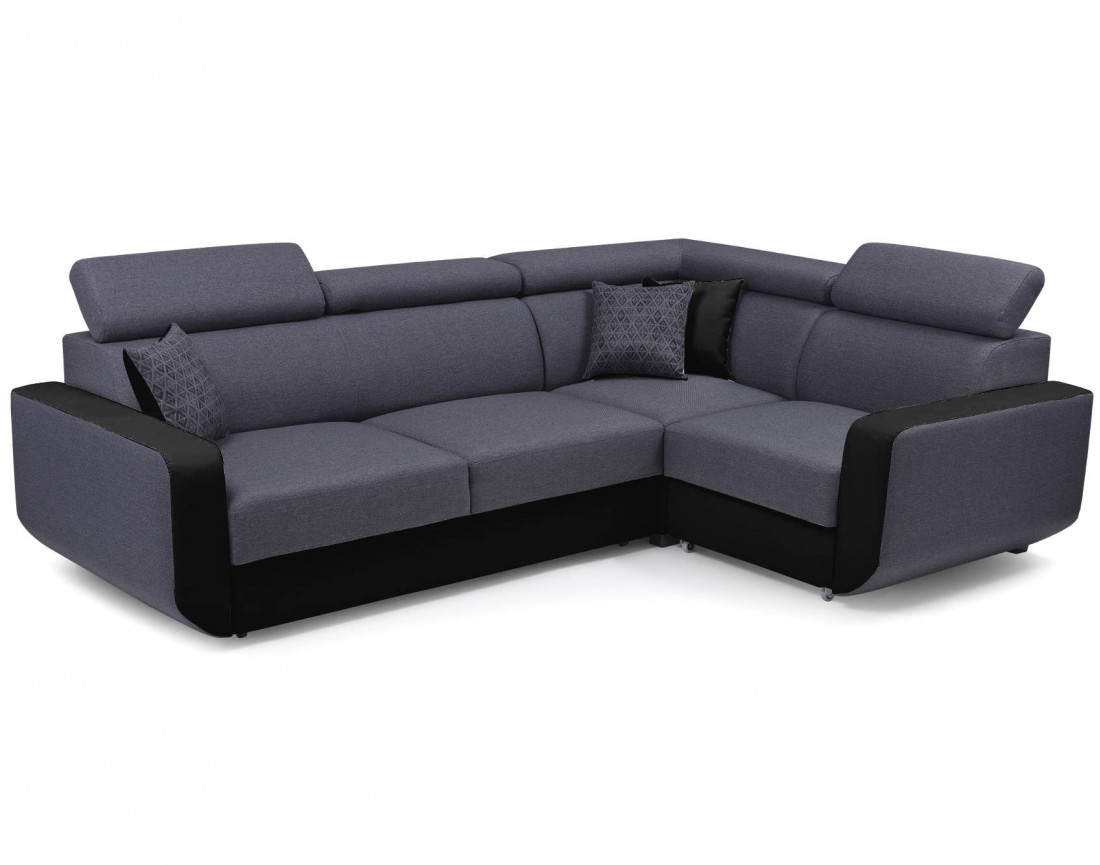 Dustin - Canapé d'angle L réversible - 5 places - Convertible avec coffre - Têtieres réglables