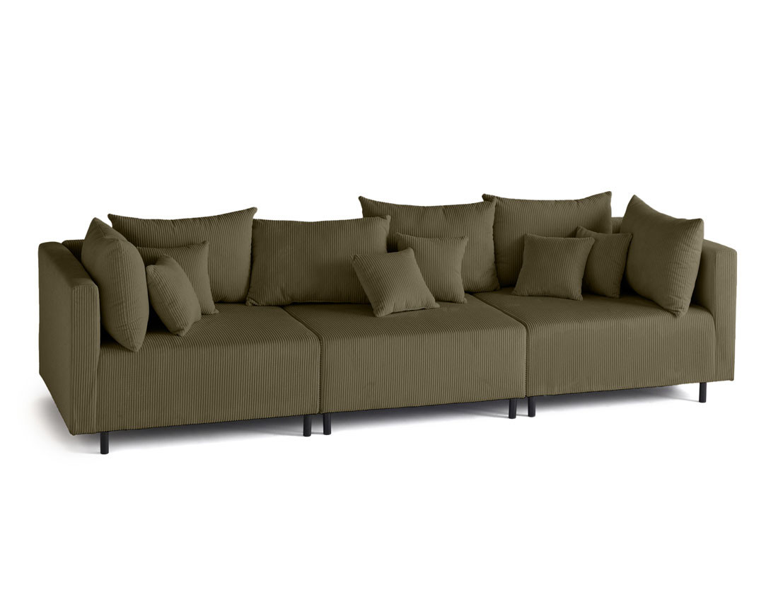 Le canapé Edinburg, avec ses 3 places assises et ses lignes épurées, s'impose comme un incontournable de la décoration intérieure. Son revêtement en velours côtelé lui confère un cachet unique et une texture douce au toucher qui invite à la détente.